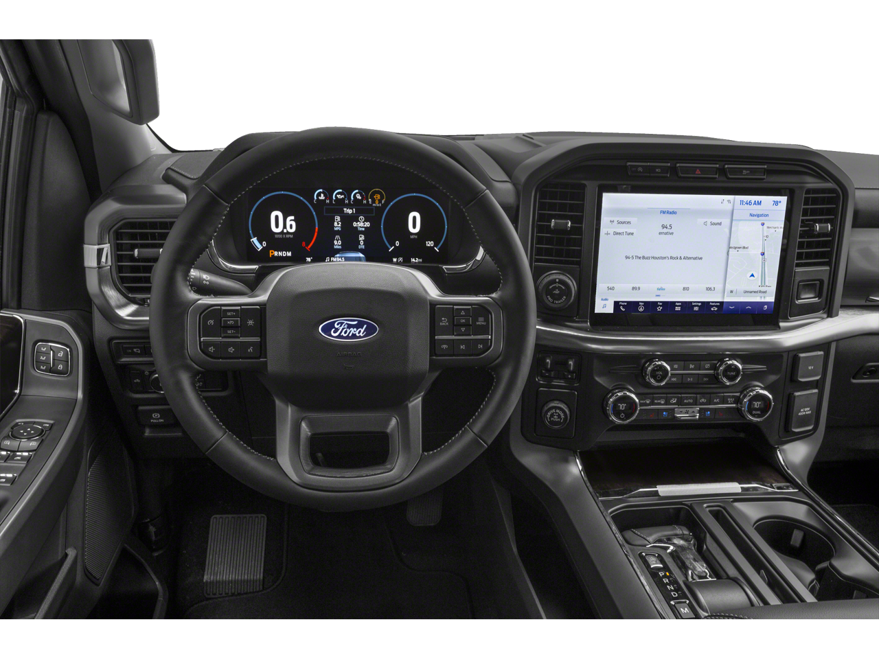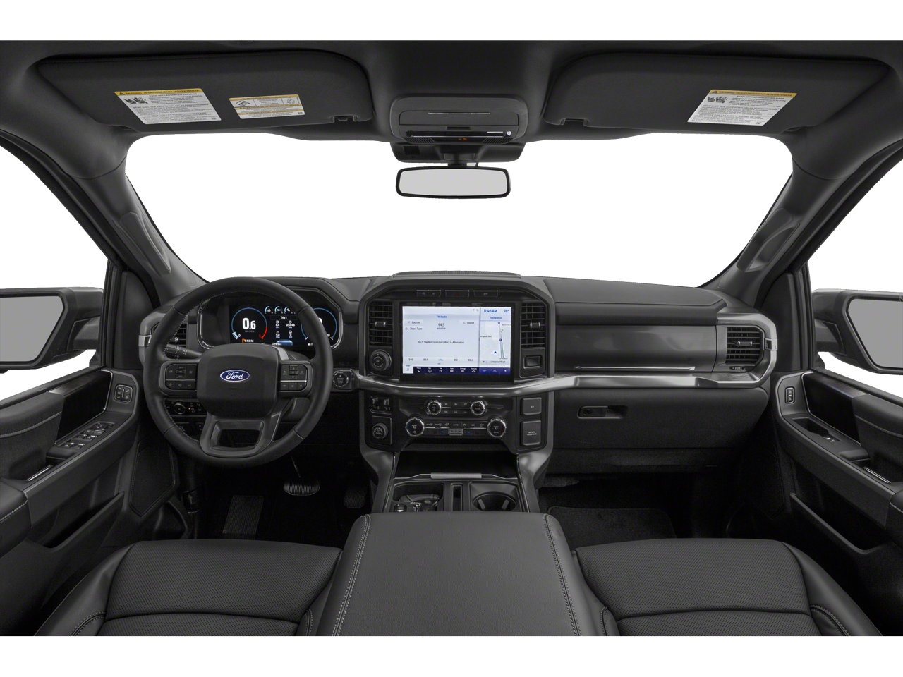 LARIAT CHROME APPEARANCE PACKAGE 2 chrome front tow hooks, Chrome Single-Tip Exhaust, 6 Bright Polished Running Board, Chrome Door & Tailgate Handles w/Body-Color Bezel, Wheels: 18 Chrome-Like PVD, Chrome 2-Bar Grille w/4 Minor Bars, painted silver surround and background mesh, Chrome Skull Caps on Exterior Mirrors, EQUIPMENT GROUP 501A MID Radio: B&O Sound System by Bang & Olufsen, HD radio and 8 speakers including subwoofer, Universal Garage Door Opener, Onboard 400W Outlet, Replaces two (2) front USB charge only ports and an additional outlet in the bed, TOW TECHNOLOGY PACKAGE smart trailer tow connector and BLIS w/trailer tow coverage where BLIS is available, Integrated Trailer Brake Controller, 360 Degree Camera, trailer reverse guidance, Pro Trailer Backup Assist, FORD CO-PILOT360 ASSIST 2.0 Evasive Steering Assist, Intelligent Adaptive Cruise Control w/Stop & Go, lane centering, Speed Sign Recognition, Connected Built-In Navigation, Navigation services require SYNC4 and FordPass Connect (optional on select vehicles), complimentary connect service and the FordPass app (see FordPass Terms for details), Eligible vehicles receive a complimentary 90-day trial of navigation services that begins on the new vehicle warranty start date, Customers must unlock the navigation service trial by activating the eligible vehicle w/a FordPass member account, If not subscribed by the end of the complimentary period, the navigation service will terminate, Connected service and features depend on compatible AT&T network availability, Evolving technology/cellular, ELECTRONIC LOCKING W/3.55 AXLE RATIO, TRANSMISSION: ELECTRONIC 10-SPEED AUTOMATIC selectable drive modes: normal, ECO, sport, tow/haul, slippery, deep snow/sand and mud/rut (STD). Ford LARIAT with Oxford White exterior and Black interior features a V6 Cylinder Engine with 325 HP at 5000 RPM*.