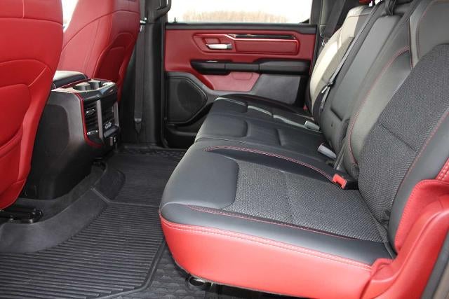 REBEL LEVEL 2 EQUIPMENT GROUP Google Android Auto®, SiriusXM Radio Service, Bluetooth® Handsfree Phone & Audio, USB Host Flip, Rear Window Defroster, Rain Sensitive Windshield Wipers, For Details, Visit DriveUconnect.com, Integrated Center Stack Radio, ParkSense Front/Rear Park Assist w/Stop, Power Adjustable Pedals, Rear Dome w/On/Off Switch Lamp, Connectivity - US/Canada, Body Color Door Handles, 4G LTE Wi-Fi Hot Spot, 115V Auxiliary Rear Power Outlet, Media Hub w/2 Charge Only USBs, Exterior Mirrors w/Heating Element, Auto Dim Exterior Driver Mirror, Heated Front Seats, Radio: Uconnect 5 W w/8.4 Display, Heated Steering Wheel, 8.4 Touchscreen Display, Foam Bottle Insert (Door Trim Panel), Security Alarm, Black Premium Power Mirrors, Apple CarPlay®, Remote Start System, SiriusXM Satellite, ENGINE: 5.7L V8 HEMI MDS VVT Active Noise Control System, Heavy Duty Engine Cooling, Passive Tuned Mass Damper, Dual Exhaust w/Black Tips, GVWR: 7,100 lbs, HEMI Badge, 220 Amp Alternator, RADIO: UCONNECT 5 NAV W/12.0 DISPLAY Google Android Auto®, Off-Road Information Pages, SiriusXM Radio Service, USB Host Flip, Disassociated Touchscreen Display, HD Radio, For Details, Visit DriveUconnect.com, Integrated Center Stack Radio, Connectivity - US/Canada, 12 Touchscreen Display, Air Conditioning ATC w/Dual Zone Control, GPS Navigation, 4G LTE Wi-Fi Hot Spot, SiriusXM w/360L, All Radio Equipped Vehicles, Connected Travel & Traffic Services, All R1 High Radios, Apple CarPlay®, LED Footwell Lighting, 9 AMPLIFIED SPEAKERS W/SUBWOOFER, TRANSMISSION: 8-SPEED AUTOMATIC (8HP75). Ram Rebel with Granite Crystal Metallic Clearcoat exterior and Red/Black interior features a 8 Cylinder Engine with 305 HP at 6400 RPM*.
