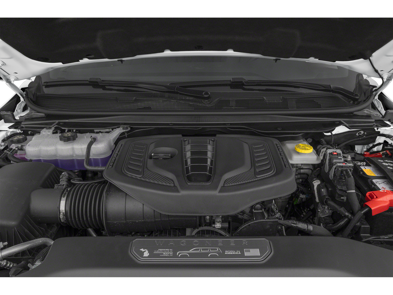 (STD), (STD). Jeep Wagoneer with Diamond Black Crystal Pearlcoat exterior and Global Black interior features a Straight 6 Cylinder Engine with 420 HP at 5200 RPM*.